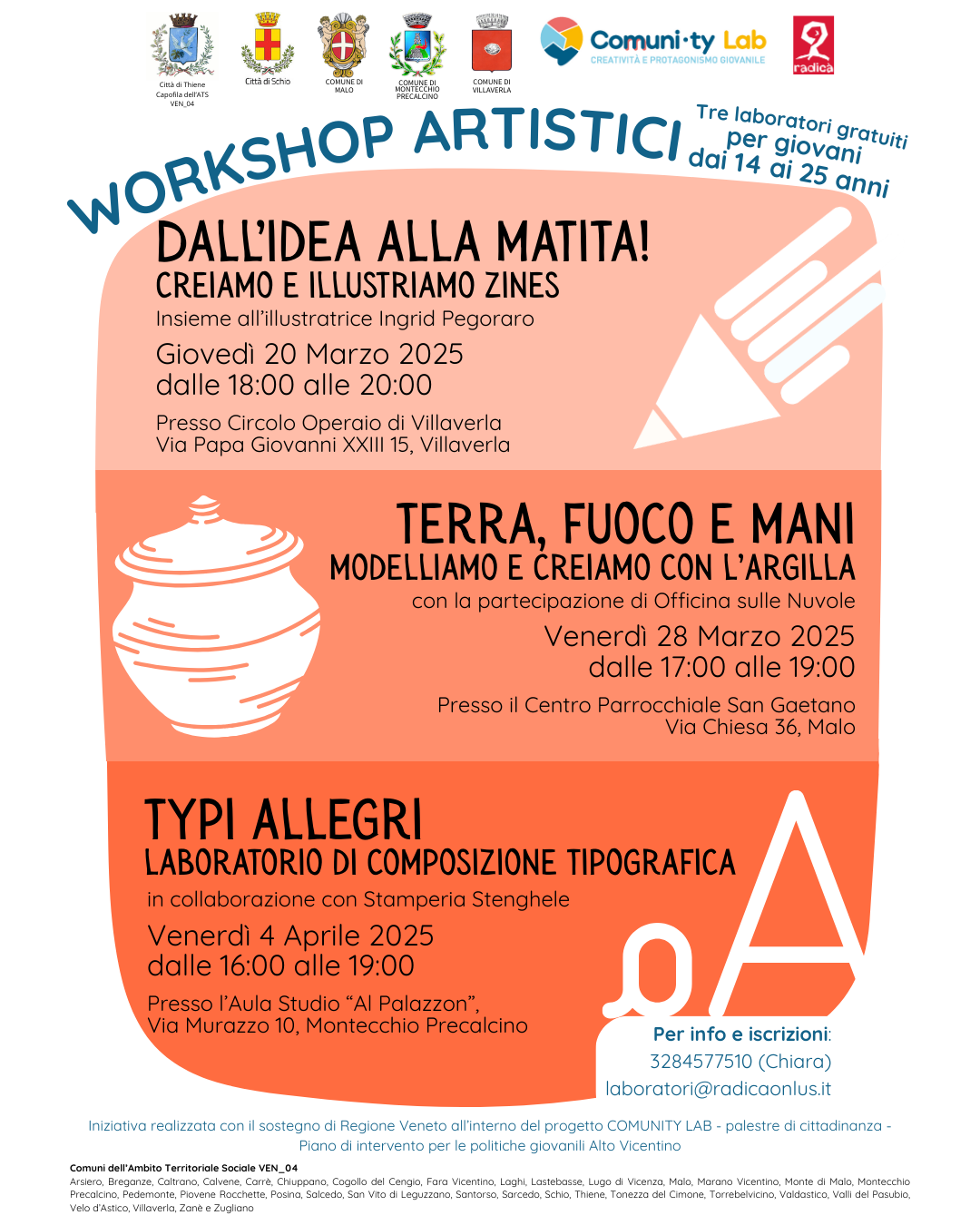 Tre laboratori gratuiti per giovani dai 14 ai 25 anni